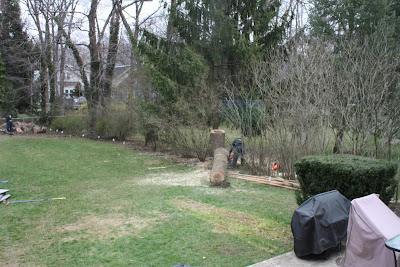 We have been busy trying to find someone reasonable to come and take the 40' tree down, not an easy task. $900 later, a massive tree down and lots of wood to split up for a fire in our outdoor firepit this summer! SUCCESS!!!! My tootsies will be happy this summer :-)